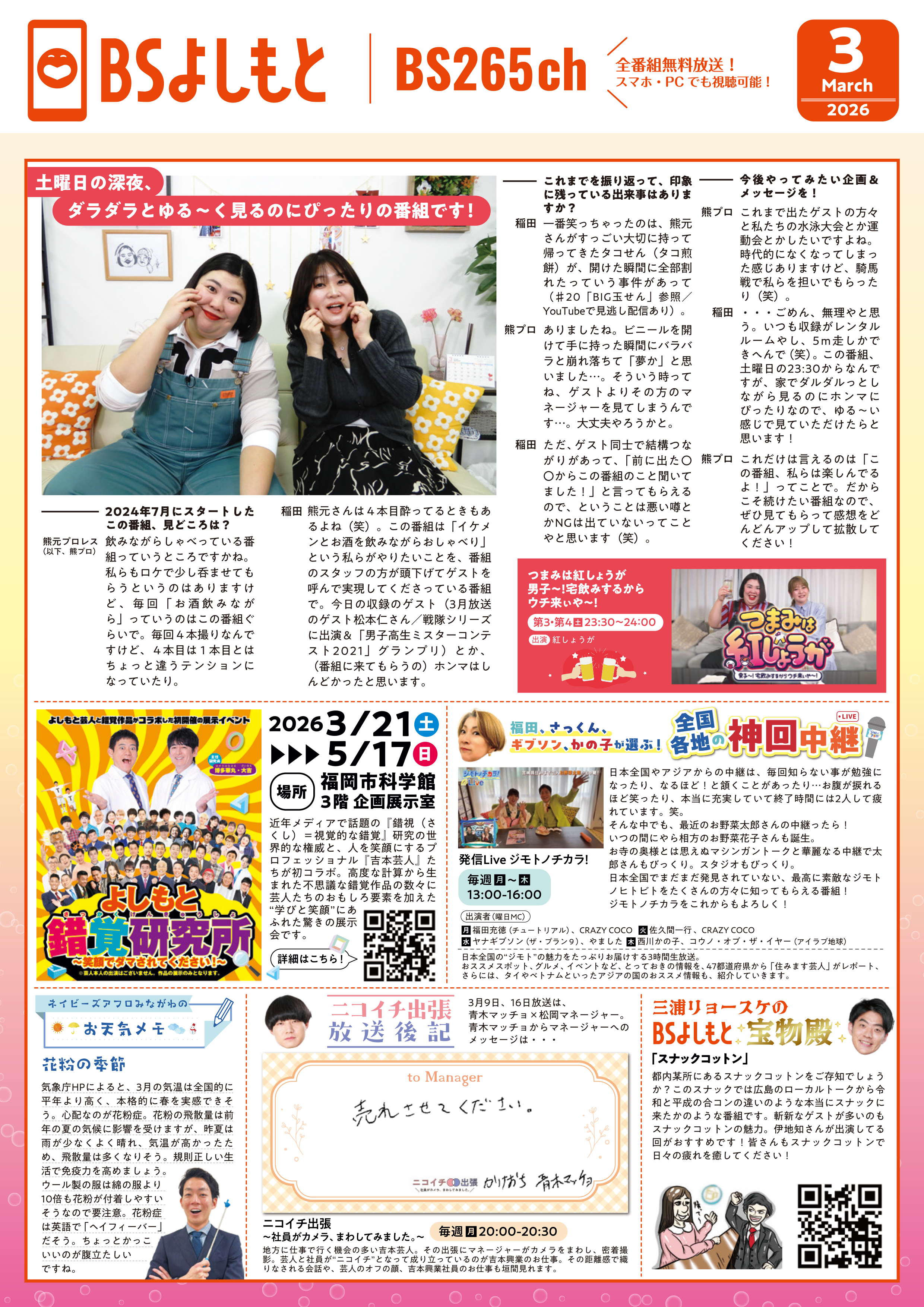 - 豪華ゲスト共演!!「BSよしもと」&「BSJapanext」&「BS松竹東急」プレゼンツ 新BS3局で共同開催 & 1月28日(日)3局同時放送!!「吉本新喜劇と西川貴教&オリックス・バファローズ」